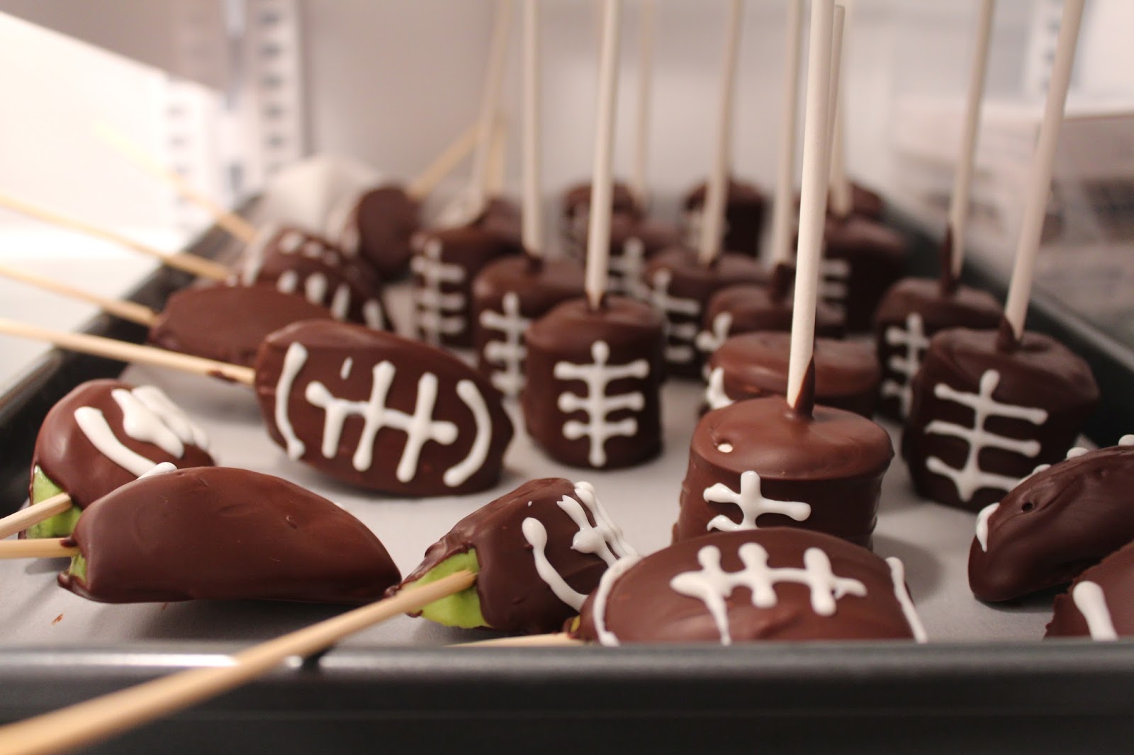 You know what’s coming. It’s the biggest football event of the year…..Super Bowl week!! In honor of the day and the fact that I love chocolate, I’m marrying the two with Chocolate Football Pops. They take very little time and effort and are really affordable. Each pop costs less than 20 cents. Let the dipping begin!
