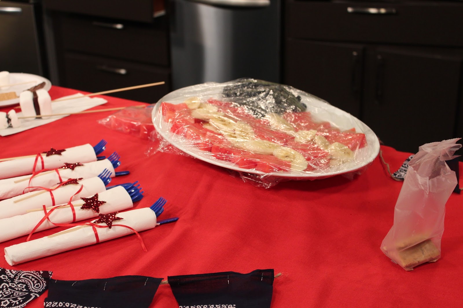 Patriotic Fruit Tray & Stars and Stripes Silverware |