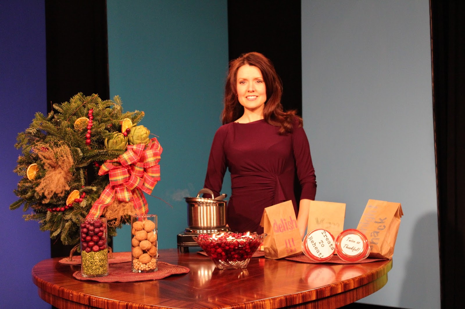 I know it’s late, I know…..For the past 12 days I’ve been as sick as I’ve ever been (in my life), and I’m still not better yet. There is a vicious respiratory virus going around, so wash your hands, wash your hands, and run, don’t walk away from sick people. I don’t even care who I offend at this point; if you’re sick, I’m leaving. On Thanksgiving morning, I presented an Effortless Girl Thanksgiving to Christmas segment with some super easy tips for using what you have already at home for double holiday duty. The video and photos are below and the how-to’s will be up starting tomorrow. Thank you to my equally sick Dad for coming along to help me carry my stuff, the struggle for both of us was real.